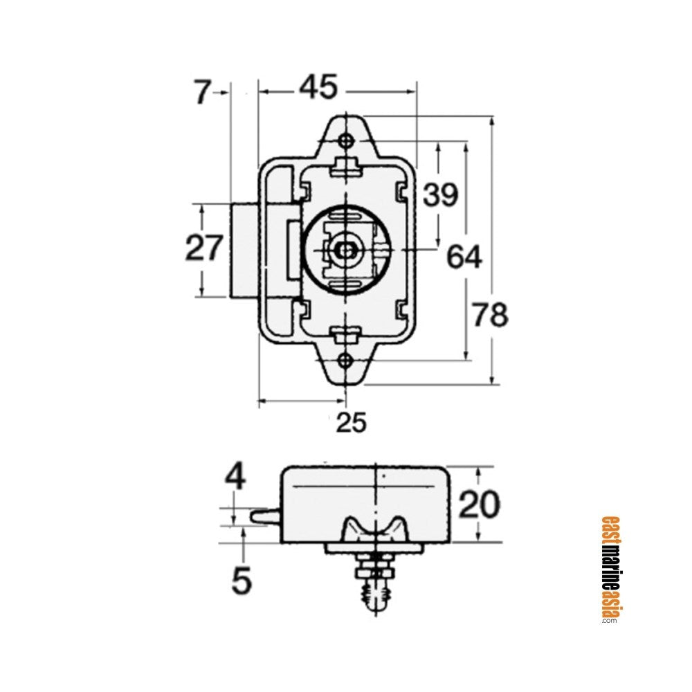 Press the push-button to lock it and is then aligned, press the button to open and to release the cabinet doors making a knob grip at the same time; 2-screw mounting click and ring nut from the outside with a hole of Ø size 26 mm; nylon casing, stainless steel springs. Knob and ring nut NOT INCLUDED.