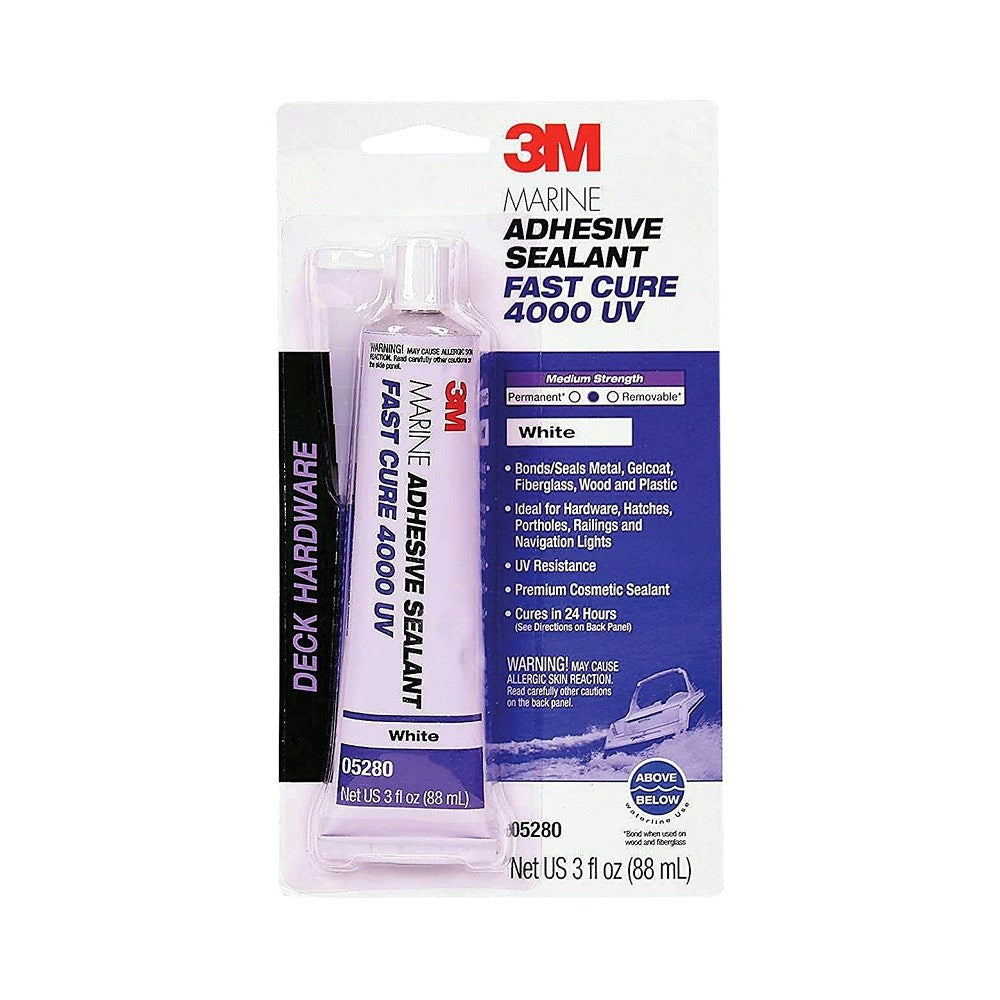 3M Marine Adhesive Sealant 4000 UV Fast Cure is a one-component, medium-strength, moisture-curing, gap-filling sealant that cures to form a firm, flexible and waterproof seal on aluminium, wood, gel coat and fiberglass, making it well-suited for marine applications above or below the waterline. This product offers excellent UV resistance for reliable long term performance.