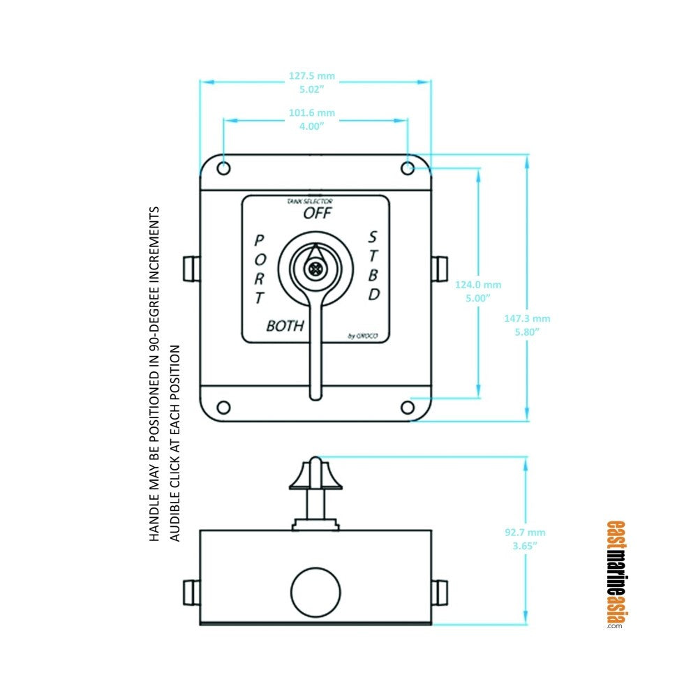 Four Positions: Tank-1, Tank-2, Tanks 1 & 2, Off.  Audible ?click? at each handle position.  Selector valve is C83600 bronze construction.