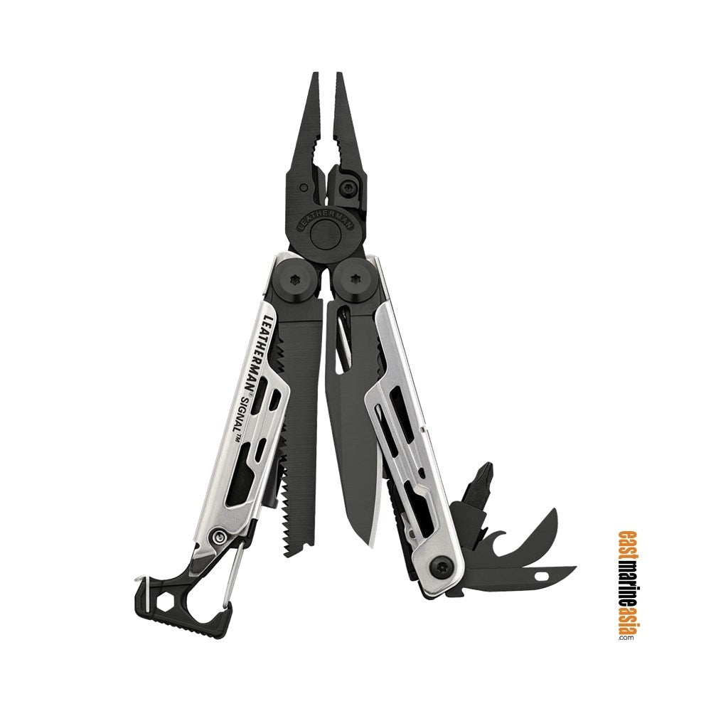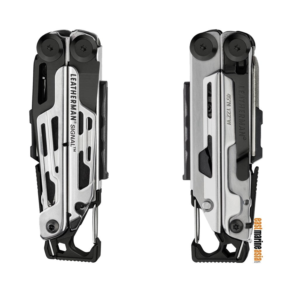 Leather Signal is a multi-tool designed for adventure with a Firestarter, hammer, one-handed blade and an emergency whistle.