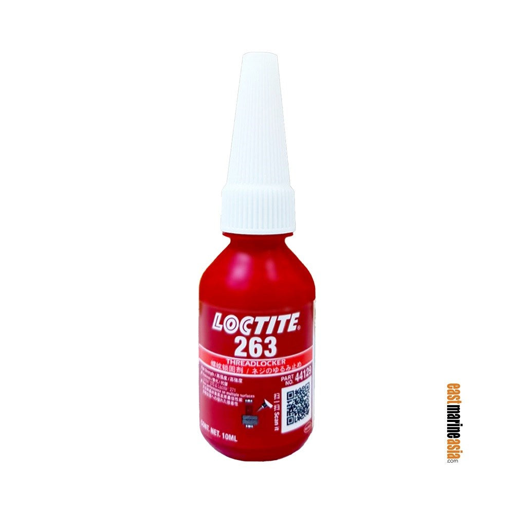 Loctite 263 is a red, dual cure, acrylic dimethacrylate ester fluorescent threadlocker designed for the permanent locking and sealing of threaded fasteners. It cures between close fitting metal surfaces and prevents loosening and leakage from shock and vibration. It works on active metals (eg, brass, copper) and passive substrates such as stainless steel and plated surfaces.