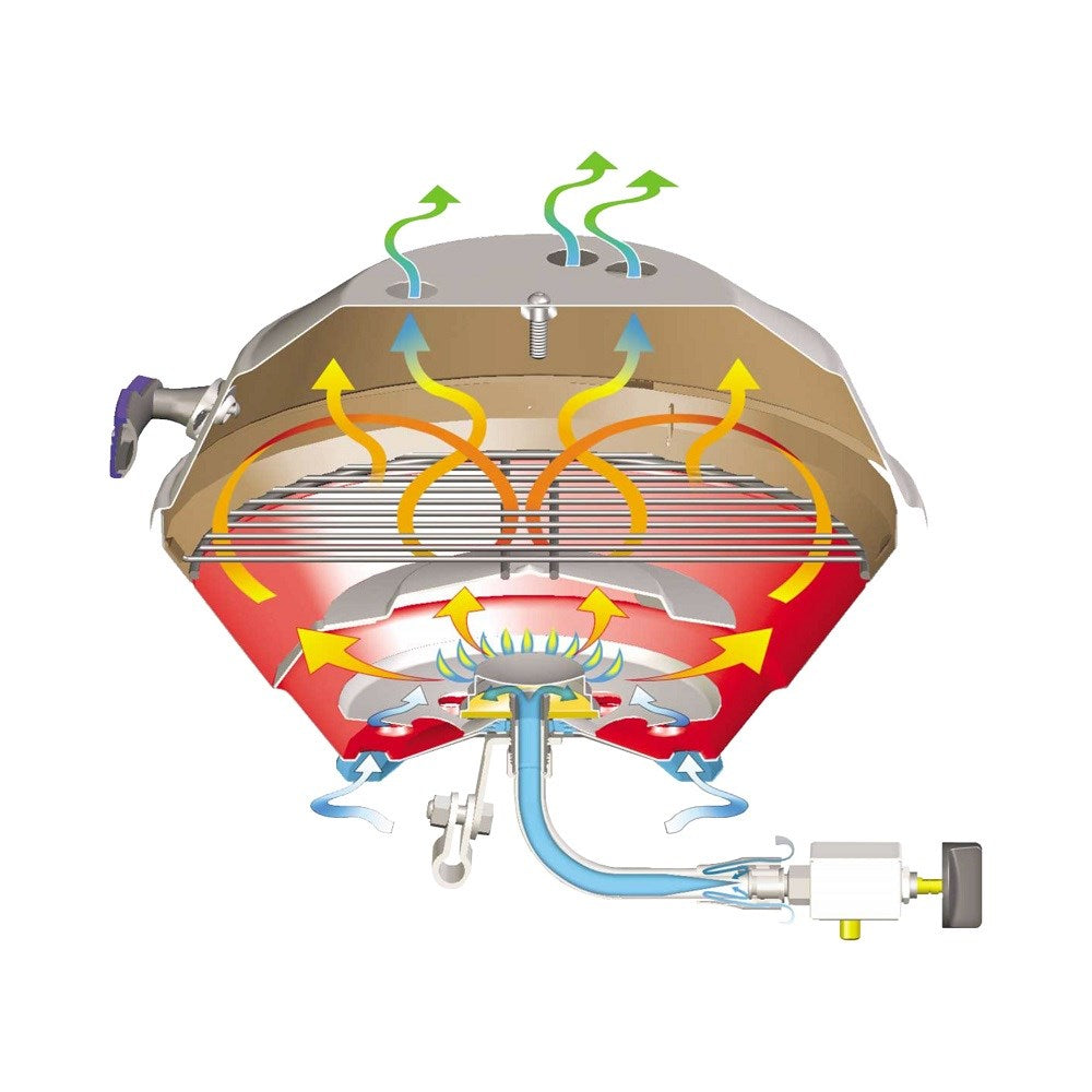 - Burner & hi-tech radiant plate heat distribution design. Less flare up, even heat distribution and longer grill life