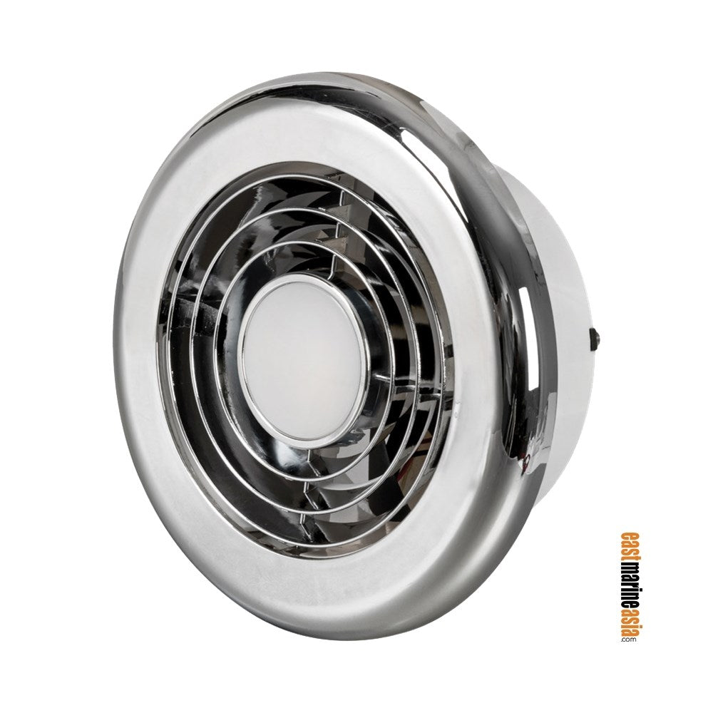 Compact extractor fan with built-in white LED light for application in toilets and kitchens. Extraction fan and light wiring are independent.