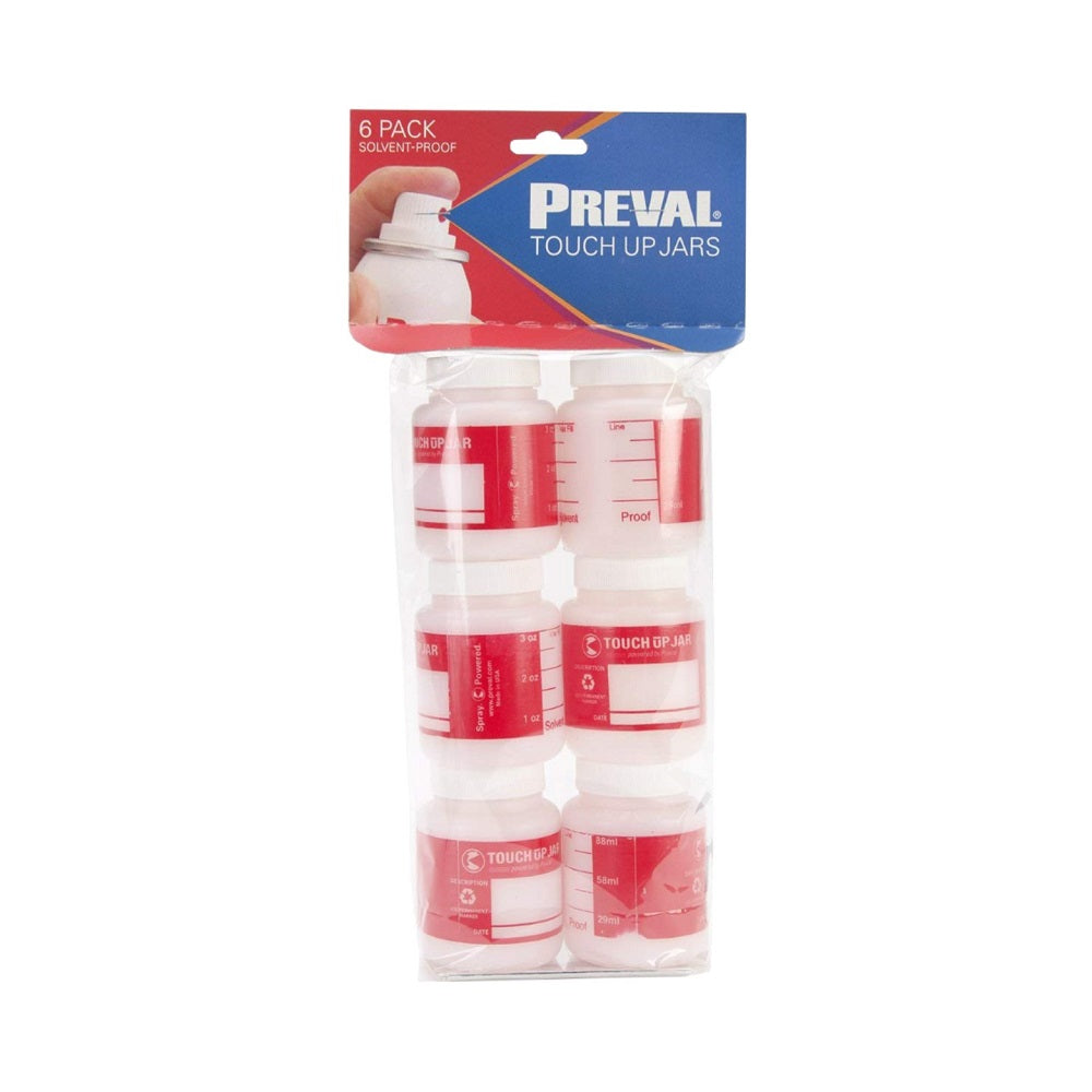 These Preval Touch-up Jars are solvent-proof and ideal for multi-colour applications.  Storing is now even easier, and each touch-up jar comes with its own label.  These units are designed for the Preval Sprayer, shatter proof lightweight, reusable, recyclable and made in USA.  Individual safety caps and small dip tubes are included.