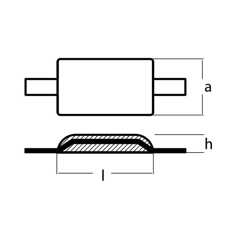 Tecnoseal Z4-ALAL weld-on aluminium hull anode, with aluminium strap.